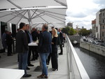 Im Anschluss an die Führung kamen die Kulturexpertinnen, Unternehmensvertreterinnen und Sponsoringverantwortlichen – unter anderem von SAP, E.ON, BMW sowie weiteren engagierten Kulturförder*innen – erneut auf der Terrasse zusammen. Beim Imbiss im neu eröffneten Restaurant CU29 der James-Simon-Galerie bot sich Raum für vertiefende Gespräche, neue Kontakte und den Austausch über aktuelle Entwicklungen im Kultur- und Sponsoringbereich.